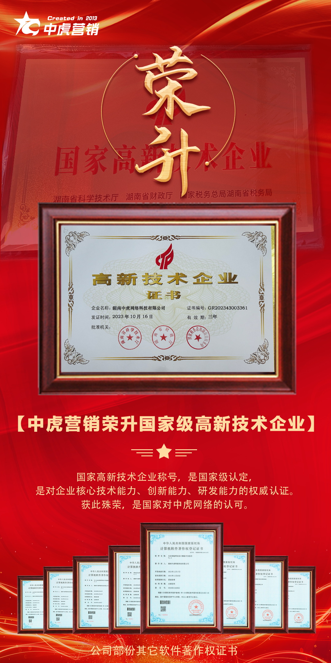 由科技部、財(cái)政部、稅務(wù)總局組成的全國(guó)高新技術(shù)企業(yè)認(rèn)定管理工作領(lǐng)導(dǎo)小組辦公室將《湖南省認(rèn)定機(jī)構(gòu)2023年認(rèn)定的高新技術(shù)企業(yè)》備案名單進(jìn)行公告,中虎營(yíng)銷上榜。