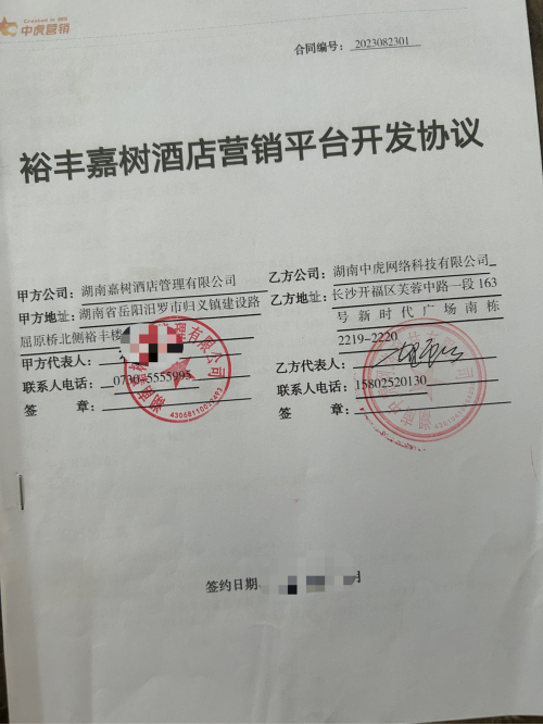 中虎營銷簽約裕豐嘉樹酒店小程序營銷平臺!